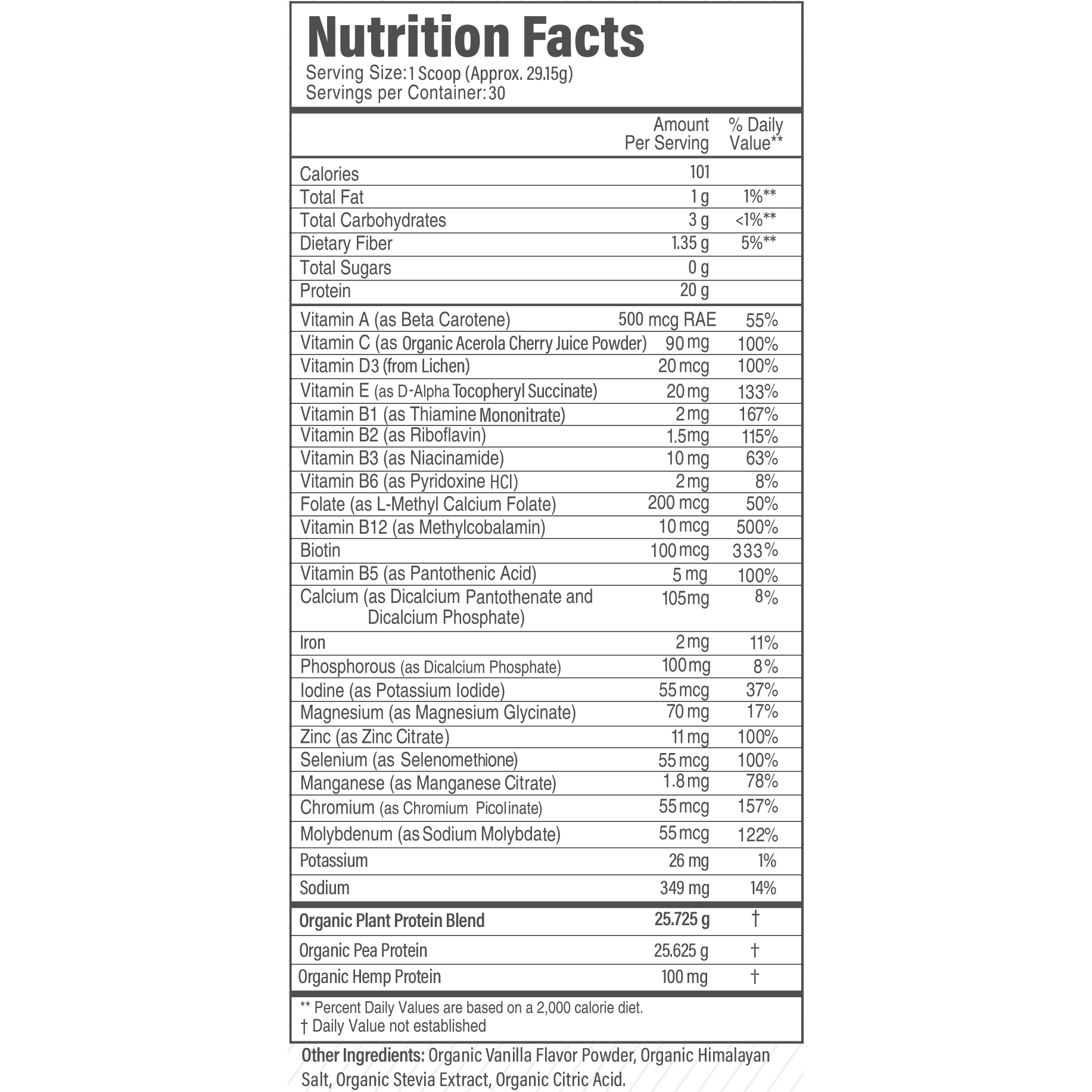 Naast de hoogste kwaliteit en de best presterende eiwitten ter wereld, houden onze voordelen daar niet op! We hebben dit product volgestopt met 26 vitamines en mineralen die essentieel zijn voor de gezondheid van je lichaam. Met alles van vitamine B voor energieproductie, ijzer voor spieropbouw en zelfs jodium voor de stofwisseling, geeft onze complete plantaardige eiwitbron je lichaam meer kracht dan welke andere eiwitbron ter wereld dan ook!